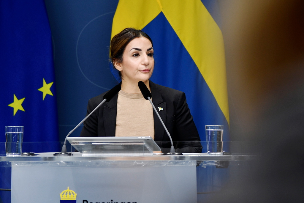 Kulturminister Parisa Liljestrand presenterar kulturens delar av budgetpropositionen. Foto: Lars Schröder/TT