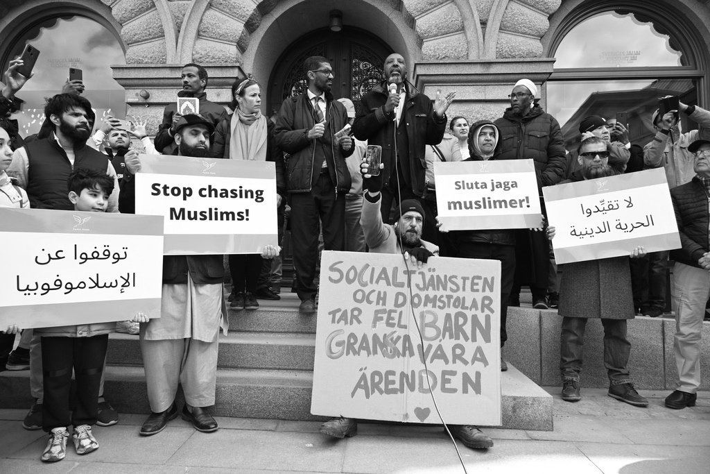 Partiet Nyans arrangerar demonstration mot koranbränningar vid Mynttorget i april 2022. Foto: Jessica Gow/TT.