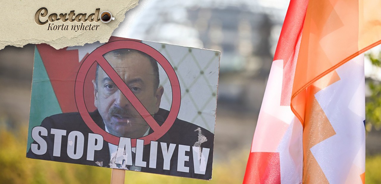 Demonstrationer mötte Azerbajdzjans president Ilham Aliyev när han besökte Berlin i april. Foto: Sebastian Gollnow/AP/TT