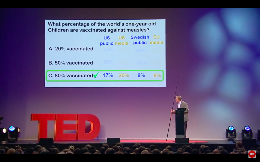 Hans Roslings första TED-talk 2006 med "den bästa statistiken du någonsin sett" nådde en stor publik med sitt budskap om den positiva globala utvecklingen. En fortsatt ström av TED-föreläsningar befäste hans internationella rykte som faktabaserad sanningssägare. Det var en effektiv men också problematisk form av kommunikation, då de gav åhörarna föga utrymme att kontrollera, ifrågasätta och reflektera. Rosling undslapp den akademiska publiceringens gatlopp, men fick inte heller sina påståenden prövade av kunniga kollegor.