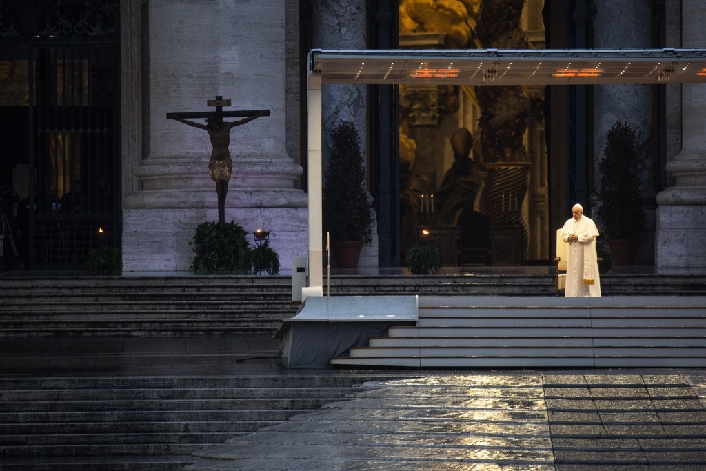 Bilden av en ensam påve på Petersplatsen i Rom har blivit en symbol för Italiens olyckor under pandemiåret. Foto: Stefano Costantino / MEGA