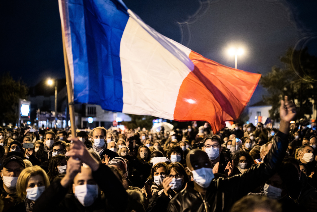 Demonstration i Paris för att visa solidaritet till den mördade läraren Samuel Paty. Foto: Alexis Sciard