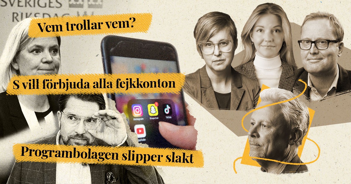 Veckopanelen med Lisa Pelling, Catarina Kärkkäinen och Stefan Stern under ledning av Staffan Dopping. Hur är det med Sverigedemokraternas trollfabrik? Ett tag såg det ut som om Tidösamarbetet var hotat av Kalla Faktas avslöjanden, men vem trollar vem? Både Magdalena Andersson och Jimmie Åkesson talar om att det pågår en påverkansoperation. SD:s kommunikationschef anser att TV4 har satt en ny ribba för vad journalister kan göra. Dessutom om public service’ framtid, brottsmisstanken mot fd rikspolischefen och tältläger på svenska universitet.