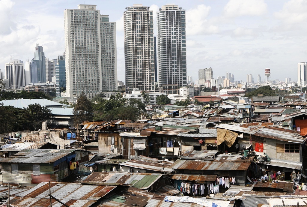 Slum och skyskrapor i centrala Manila på Filippinerna. FOTO: CHERYL RAVELO /TT