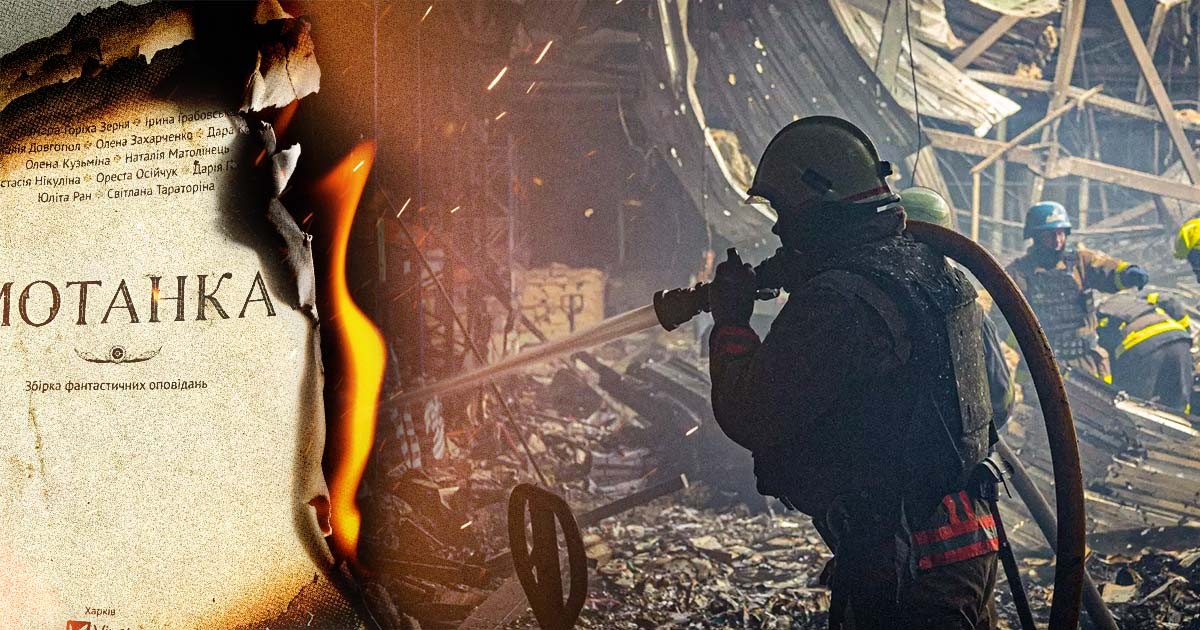 Till höger i bild: Tryckeriet Faktor druk i Charkiv efter en rysk missilattack, den 23 maj 2024. Foto: State Emergency Service of Ukraine. Kollage: Kvartal