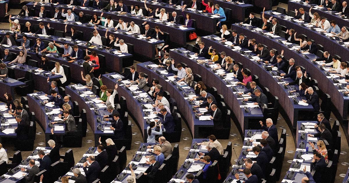 Lagstiftare röstar om Artificial Intelligence Act i Europaparlamentet, Strasbourg, 14 juni 2023. Foto: Jean-Francois Badias/AP/TT