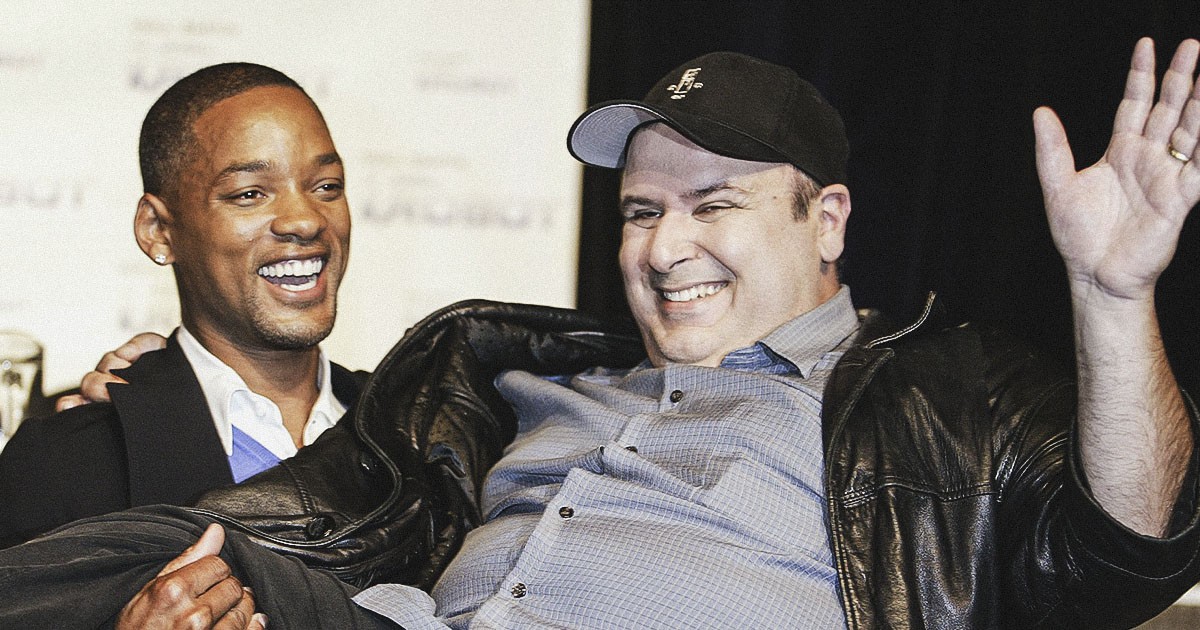 Will Smith lyfter upp regissören Alex Proyas under en presskonferens till premiären av filmen ”I, Robot” i Sydney, måndagen den 19 juli 2004. Foto: Mark Baker/AP/TT