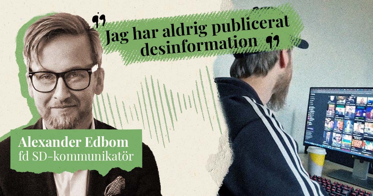 Alexander Edbom, tidigare ”nätkrigare” på Sverigedemokraternas kommunikationsavdelning, intervjuas av Staffan Dopping. Han hamnade milt sagt i hetluften genom Kalla Faktas program om SD:s påstådda trollfabrik. I riksdagen talade partiledare om att verksamheten var ett hot mot demokratin och kunde äventyra EU-valet. Senare kom Expressens artikel som talade om att han skulle ha försvarat Putin i tio års tid, och då blev pressen så hård att han sade upp sig. Vad är Alexander Edboms egen bild av det som hände, och tror han på ett öppet och respektfullt debattklimat? Foto: TV4.