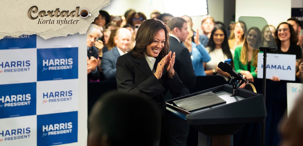 Vicepresident Kamala Harris talar vid sitt kampanjhögkvarter i Wilmington, Delaware, måndagen den 22 juli 2024. Foto: Erin Schaff/The New York Times/TT