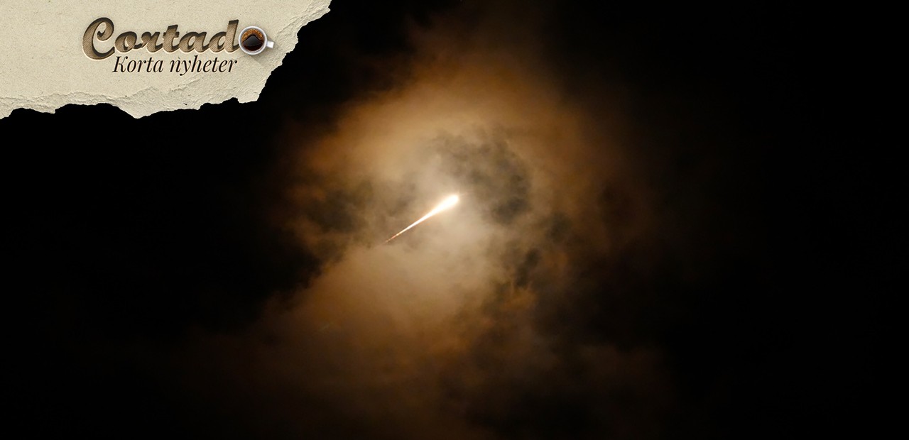 Projektiler flyger över himlen i centrala Israel medan en siren varnar för inkommande missiler avfyrade från Iran mot Israel, tisdagen den 1 oktober 2024. Foto: Ohad Zwigenberg/AP/TT