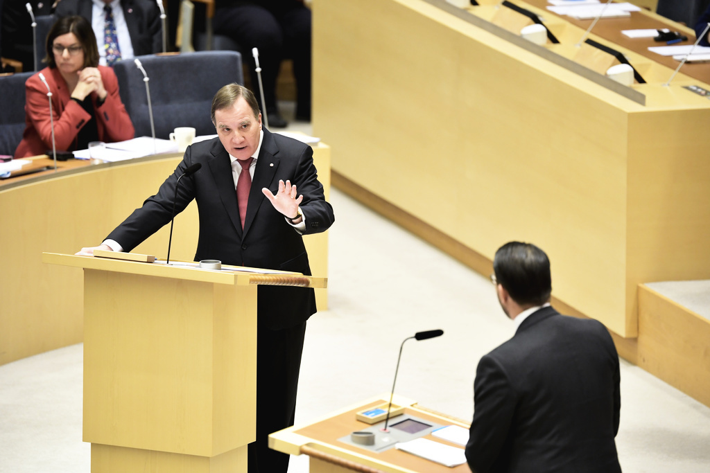 Statsminister Stefan Löfven (S) i debatt om invandring med Jimmie Åkesson (SD) Janerik Henriksson/TT