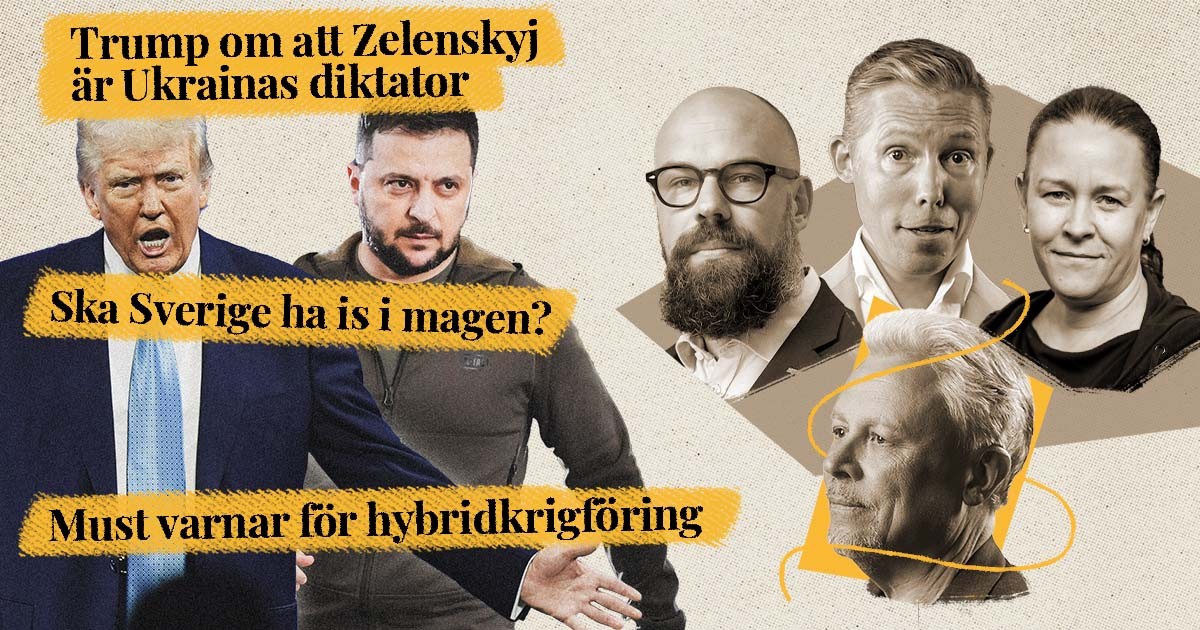 Veckopanelen med Daniel Suhonen, Henrik Jönsson och Maria Wetterstrand under ledning av Staffan Dopping. Vart tog den regelbaserade världsordningen vägen? President Trump har hävdat att Ukrainas president Zelenskyj är en diktator och att det inte var Ryssland som startade kriget. Västvärlden håller andan när vi närmar oss treårsdagen av invasionen. Militära underrättelse- och säkerhetstjänsten Must slår fast att Sverige är i ett mycket allvarligt säkerhetsläge. Har vi en vilde i Vita Huset?