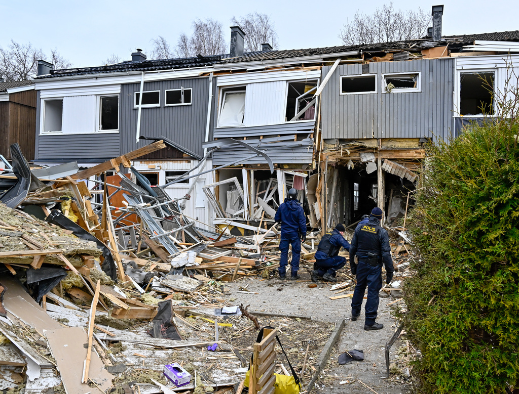 Spåren från explosionen i Hässelby i mars 2023. Foto: Jonas Ekströmer /TT