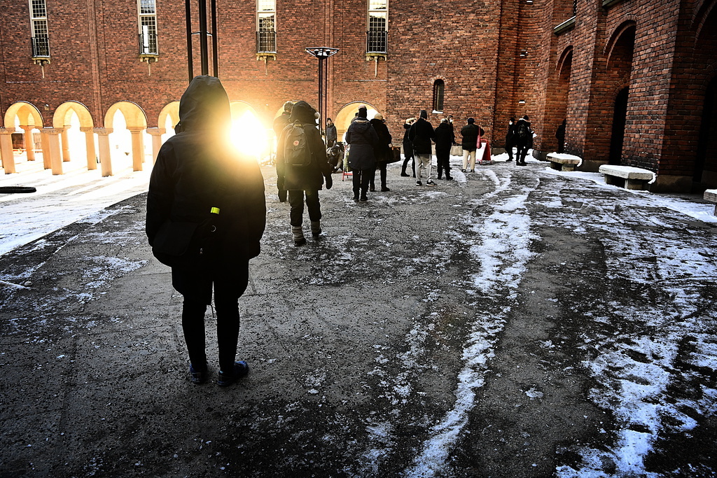 Vaccinationskö i Stockholm, våren 2021. FOTO: LINDAHL BJÖRN/Aftonbladet /TT