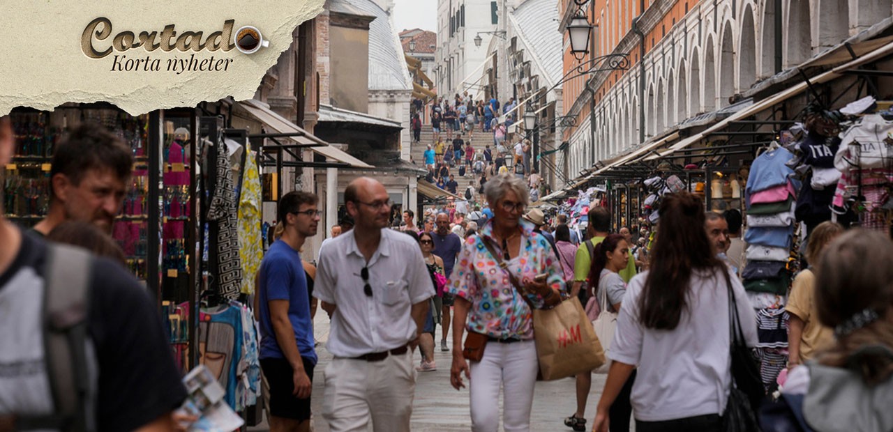 Turistträngsel i Venedigs historiska stadskärna. Foto: Luca Bruno/AP/TT