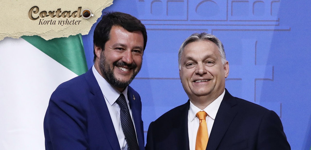 Glada miner. Italienska Legas Matteo Salvini och Ungerns premiärminister Viktor Orbán vid ett möte 2019. Foto: Szilard Koszticsak/AP/TT