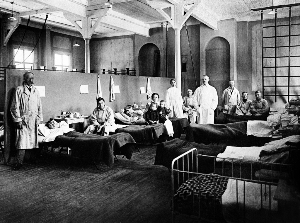 Spanska sjukan dödade mellan 25 och 100 miljoner människor. Foto från Östersund hösten 1918. FOTO: TT Nyhetsbyrån