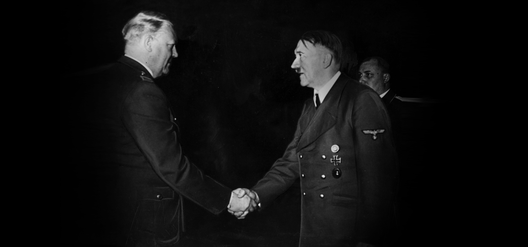 En Quisling möter Hitler i det ockuperade Norge. Sverige lyckades undkomma det ödet. Foto: TT