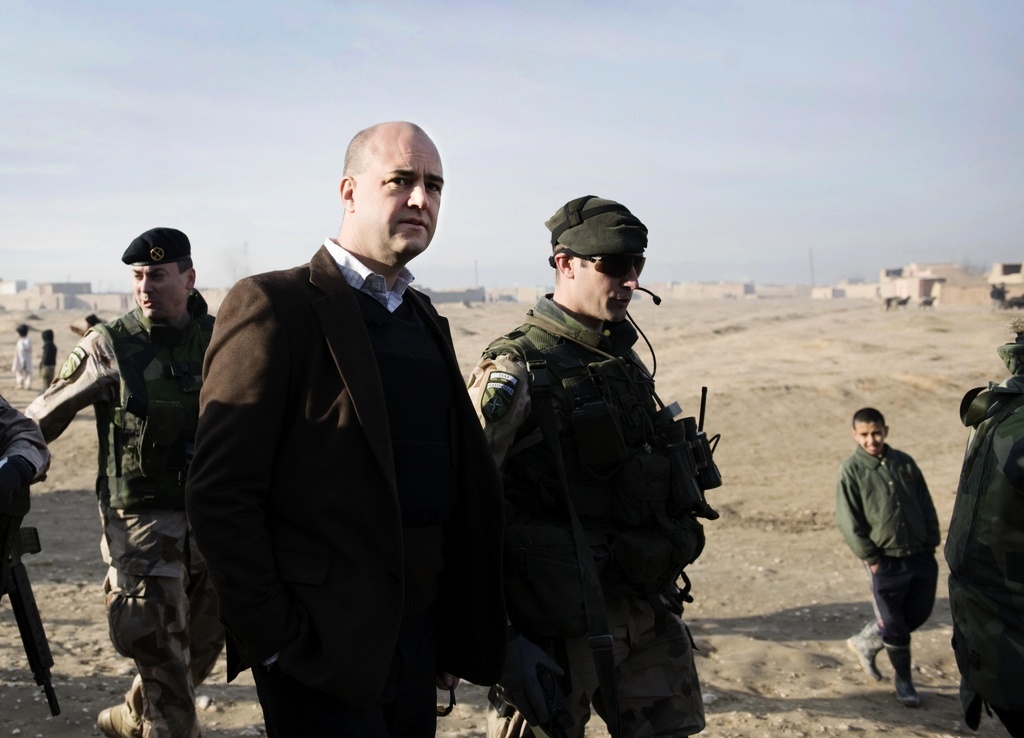 Regeringar av olika färg har motiverat kriget i Afghanistan med att Sverige skulle göra skillnad för landet. Men de verkliga skälen var andra, menar Wilhelm Agrell. Här besöker Fredrik Reinfeldt den svenska ISAF-styrkan i norra Afghanistan 2009. Foto: Henrik Montgomery/TT
