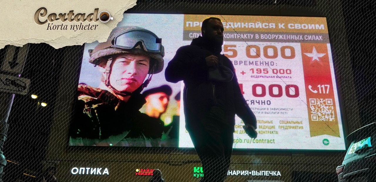 En stor värvningsaffisch för den ryska armén i centrala St Petersburg. Foto: Dmitri Lovetsky/AP/TT