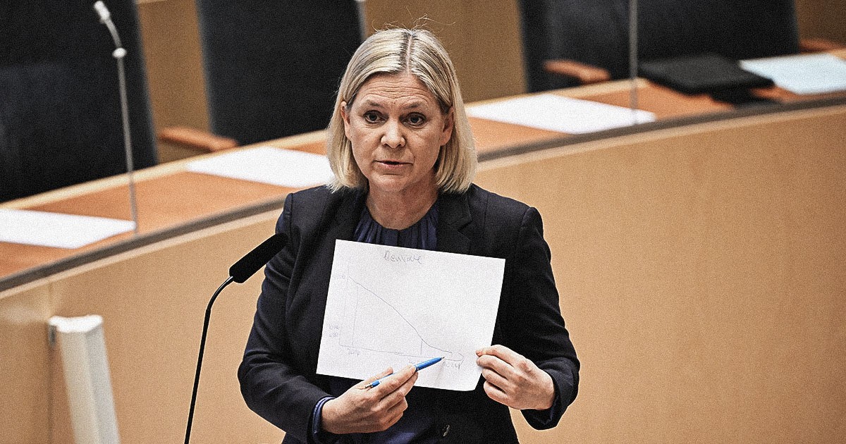 Magdalena Andersson (S) under onsdagens partiledardebatt i riksdagen. Foto: Jessica Gow/TT