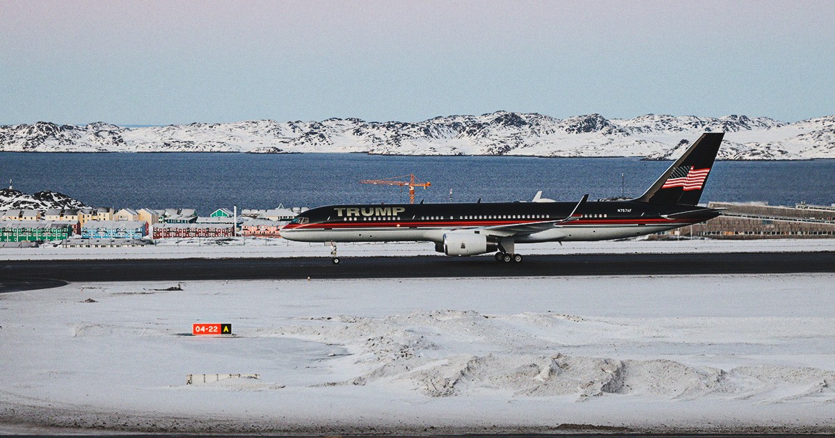 Donald Trumps Boeing 757-200 landar på flygplatsen i Nuuk, Grönland, den 7 januari 2025. Foto: Emil Stach/AP/TT