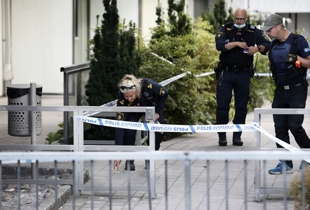 Polis på plats efter skottlossning i Husby. FOTO: JERREVÅNG STEFAN/Aftonbladet /TT