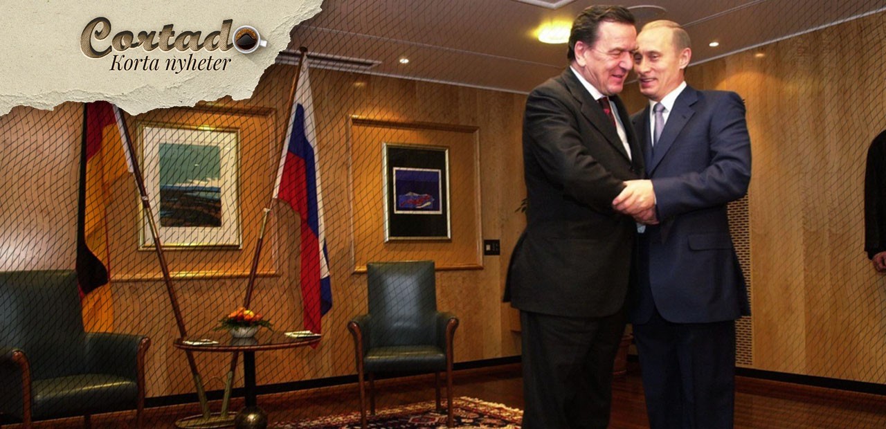 Tysklands förre förbundskansler Gerhard Schröder och Ryssland president Vladimir Putin vid ett möte 2002. Foto: Cornelius Poppe/TT/NTB