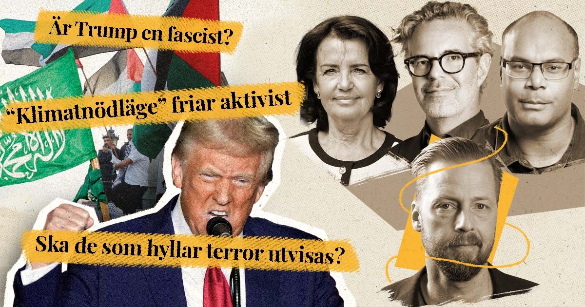 Veckopanelen med Anne Ramberg, Henrik Mitelman och Ronie Berggren under ledning av Magnus Thorén. President Biden kallar republikanska väljare för sopor, Trumpkampanjen anklagas för rasism och det är jämnt i opinionen när bara dagar återstår till valet i USA. Vad säger retoriken om läget i världens mäktigaste land och är det rimligt att kalla Donald Trump för fascist? Att hylla terrorister ska kunna leda till utvisning anser regeringen, men hur rimmar det med vår yttrandefrihet? Klimatnödläge gör att domstol friar aktivist som hindrat trafiken. Och innebär beväpnade nordkoreaner i Ukraina en helt ny spelplan för kriget mot Ryssland?