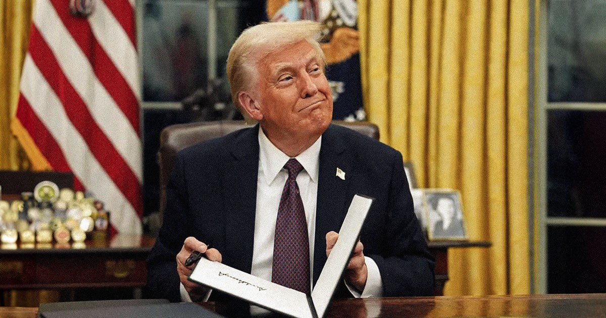 USA:s president Donald Trump skriver under exekutiva ordrar i Ovala rummet, Washington, den 20 januari 2025. Foto: Evan Vucci/AP/TT
