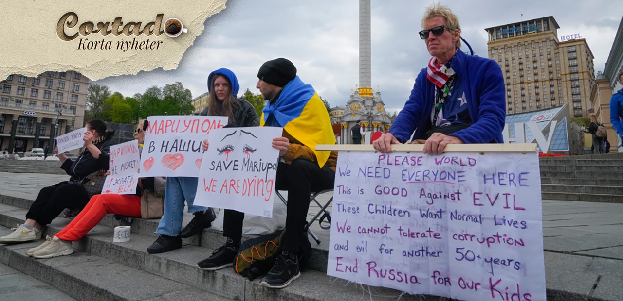 Ryan Wesley Routh, till höger, deltar i ett rally i centrala Kiev, Ukraina, lördagen den 30 april 2022. Foto: Efrem Lukatsky/AP/TT