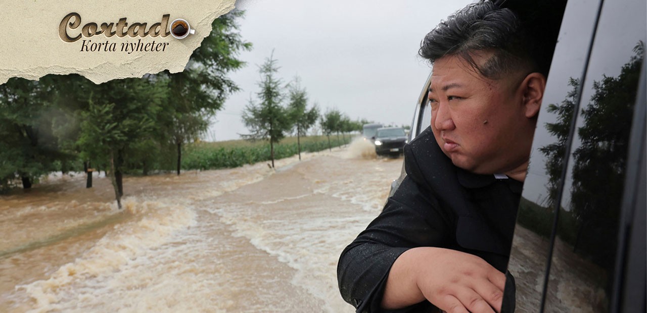 Nordkoreas ledare Kim Jong-un på plats vid räddningsarbetet i norra Pyongan som drabbades av svåra översvämningar tidigare i veckan. Foto: KCNA/AP/TT