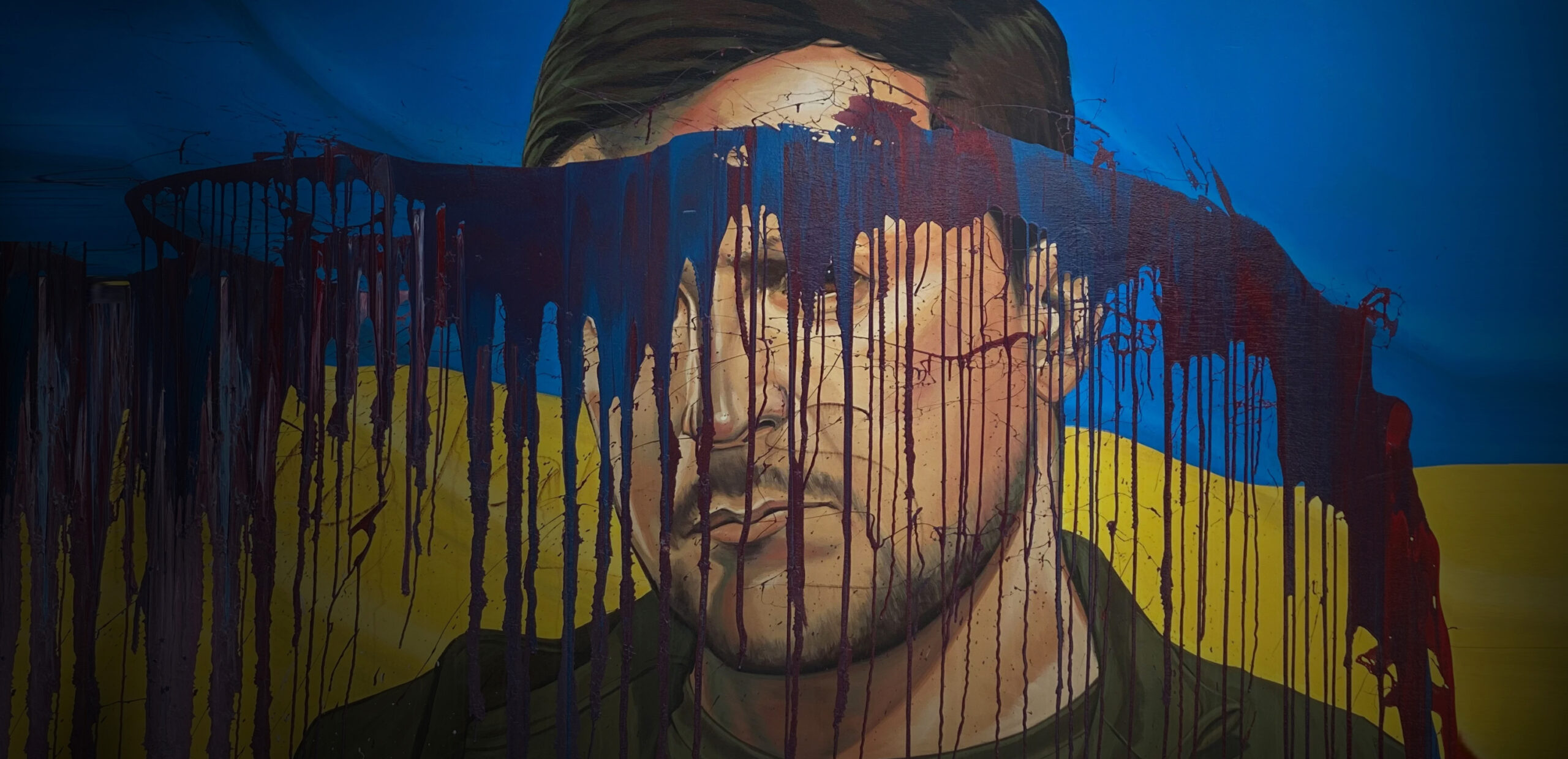 Vandaliserad väggmålning föreställande Ukrainas president. Konstnär: Roland Ruocco. Foto: Unsplash.