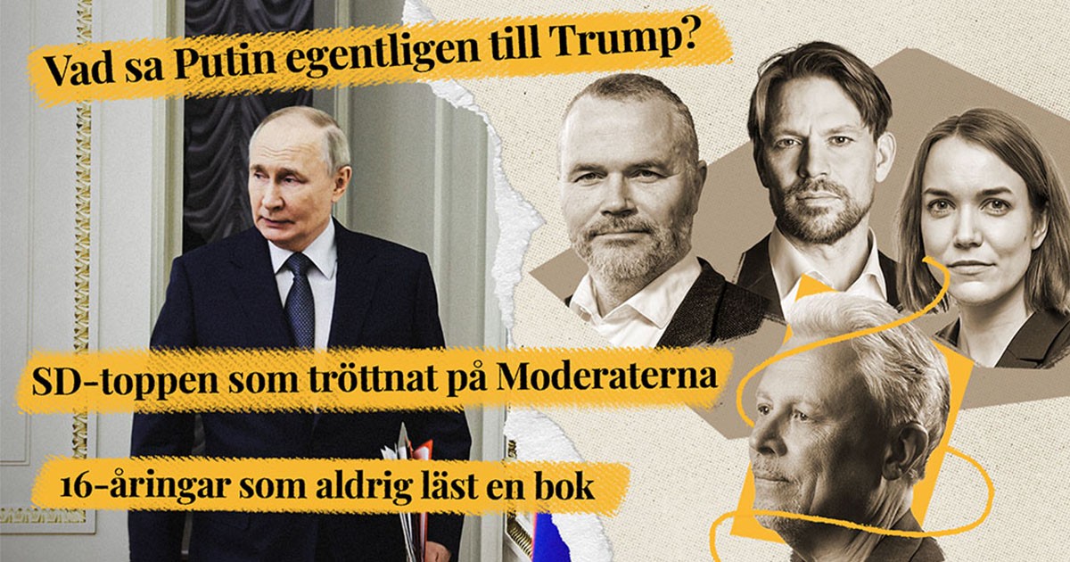 Veckopanelen med Richard Sörman, PM Nilsson och Anna Almqvist under ledning av Staffan Dopping. Var Putin en svårare nöt än Trump hade räknat med? Europas ledare möter hinder i försöken att samlas för nya stöd till Ukraina. Kraftigt skärpta maxstraff för ekobrott vill Teresa Carvalho (S) ha. Sverigedemokraternas toppnamn i Malmö säger att Moderaterna ser SD som byfånar, och känd skoldebattör larmar om gymnasieelever som inte har hört talas om Bellman eller Strindberg.