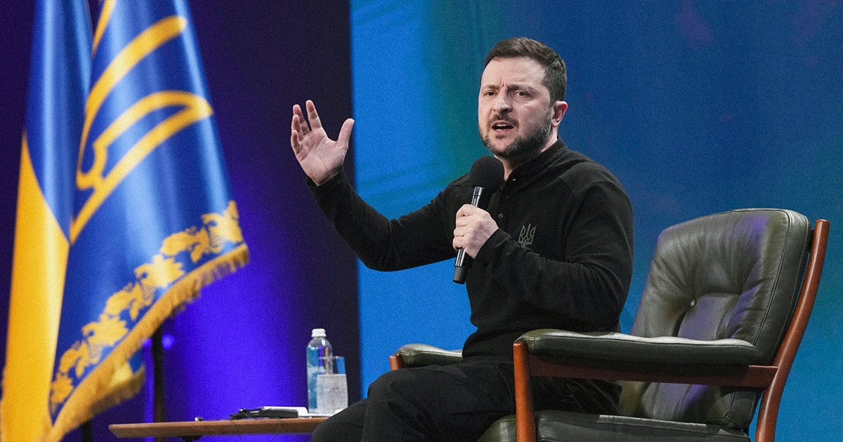 Ukrainas president Volodymyr Zelenskyj håller presskonferens i Kiev, den 23 februari 2025. Foto: Evgeniy Maloletka/AP/TT