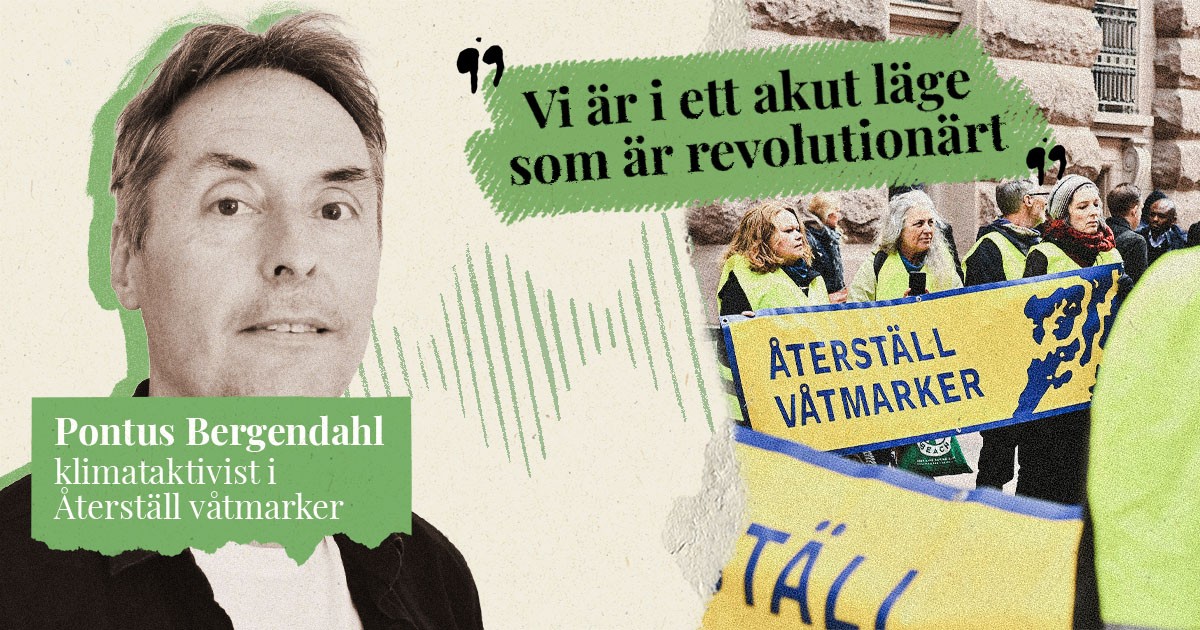 Klimataktivisten Pontus Bergendahl intervjuas av Magnus Thorén. Med vägblockader, kupper i TV och civil olydnad har Återställ våtmarker fått mycket uppmärksamhet de senaste åren, och deras aktioner har bidragit till att frågan om utdikade torvmossar hamnat i fokus. En av dem som varit med längst i rörelsen är Pontus Bergendahl. Varför valde han aktivism framför traditionell politik? Vad menar han med talet om revolution, och vilka ska få sitta med i det ”folkråd” som Återställ våtmarker anser ska styra i stället för våra demokratiskt valda politiker?