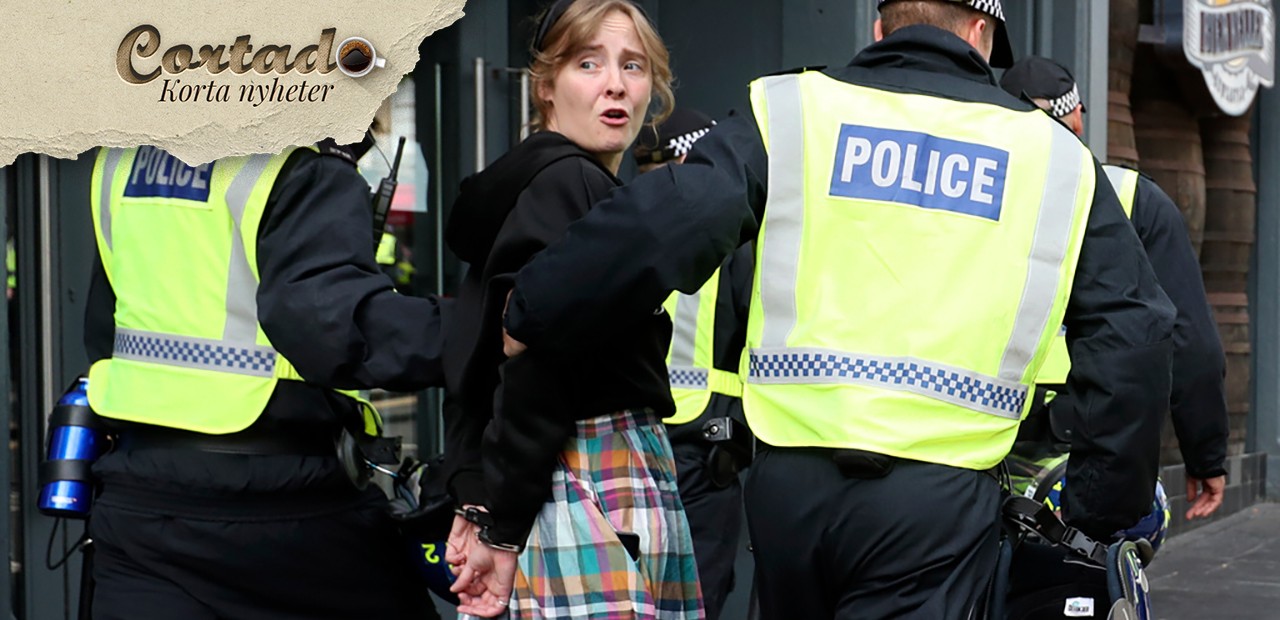 En kvinna arresteras inför en högerradikal antiinvandringsprotest i Newcastle, England, lördagen den 10 augusti 2024. Foto: Scott Heppell/AP/TT
