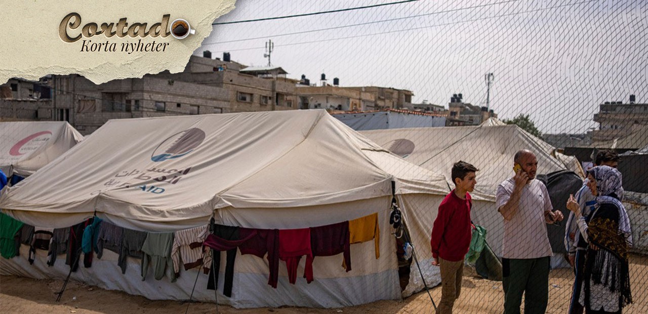 Tältläger för flyktingar i Rafah, på gränsen mot Egypten. Foto: Fatima Shbair/AP/TT