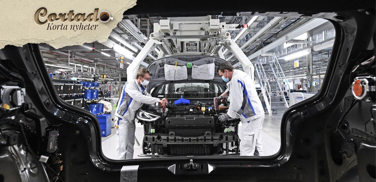 Bilbyggare på Volkswagens fabrik i Zwickau som ligger i den tyska delstaten Sachsen. Foto: Hendrik Schmidt/AP/TT