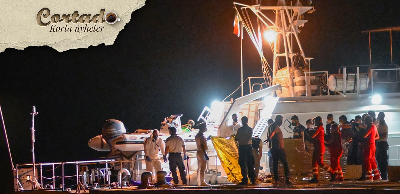 Kropparna av några av de 64 migranter som saknats i Medelhavet efter att deras fartyg förliste utanför Italiens södra kust tas i land vid den italienska södra hamnstaden Roccella Ionica, tidigt på onsdagen den 19 juni 2024. Foto: Valeria Ferraro/AP/TT