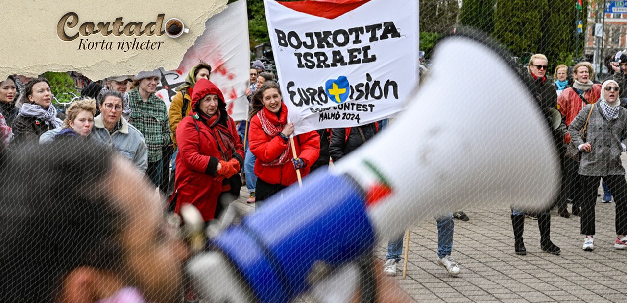 Demonstrationer med Israels deltagande i Eurovision utanför Stadshuset i Malmö. Foto: Johan Nilsson/TT