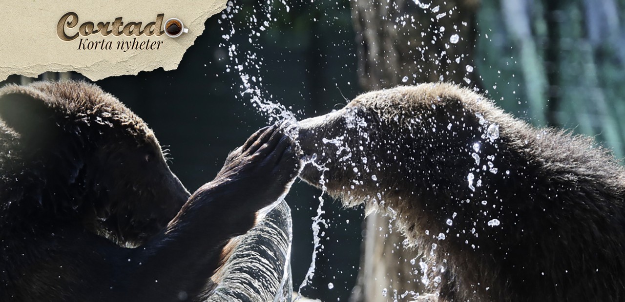 Brunbjörnsungarna Gianni, till vänster, och Sam, leker i ett område av Roms Bioparco, torsdagen den 24 maj 2018. De två 18 månader gamla ungarna utnyttjades för fototillfällen på ett hotell i norra Albanien och fördes till Italien efter att ha räddats av djurskyddsföreningar. Foto: Alessandra Tarantino/AP/TT