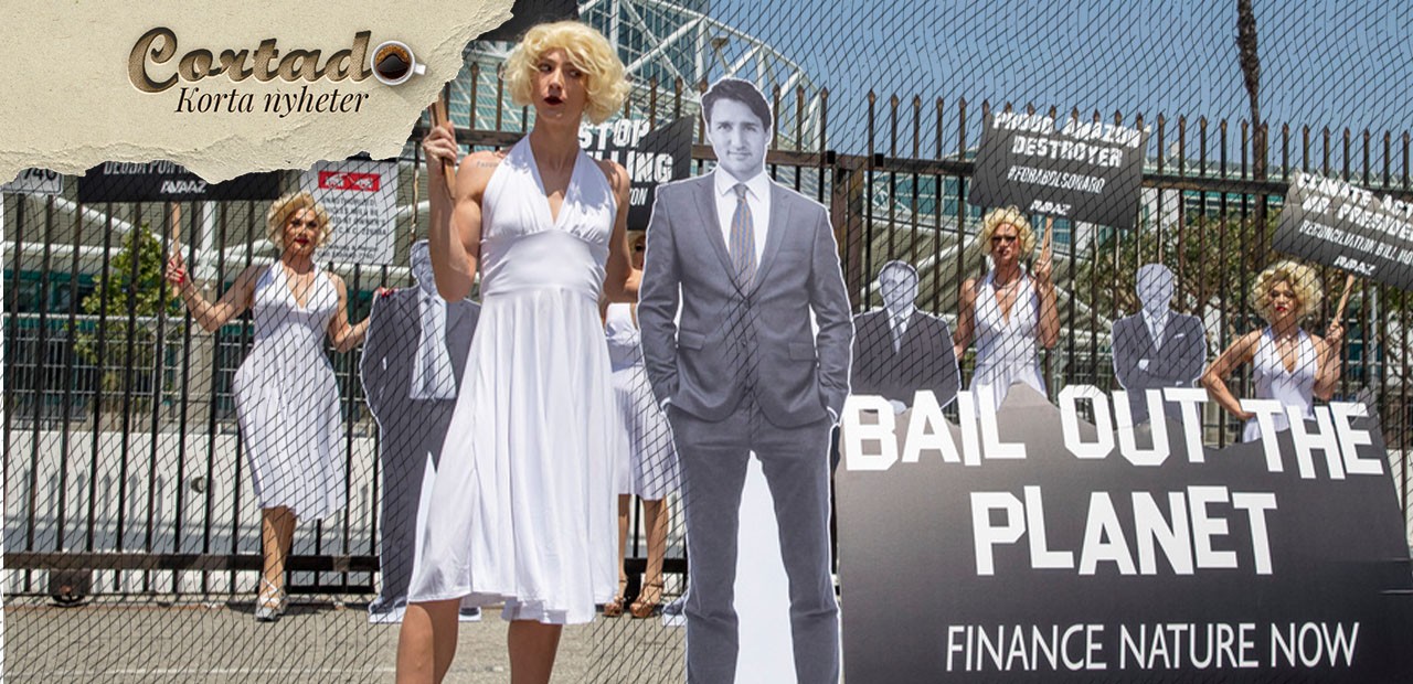 Klimataktivister från organisationen Avaaz demonstrerar utanför ett toppmöte i Los Angeles sommaren 2022. Foto: Jeff Lewis/AP/TT