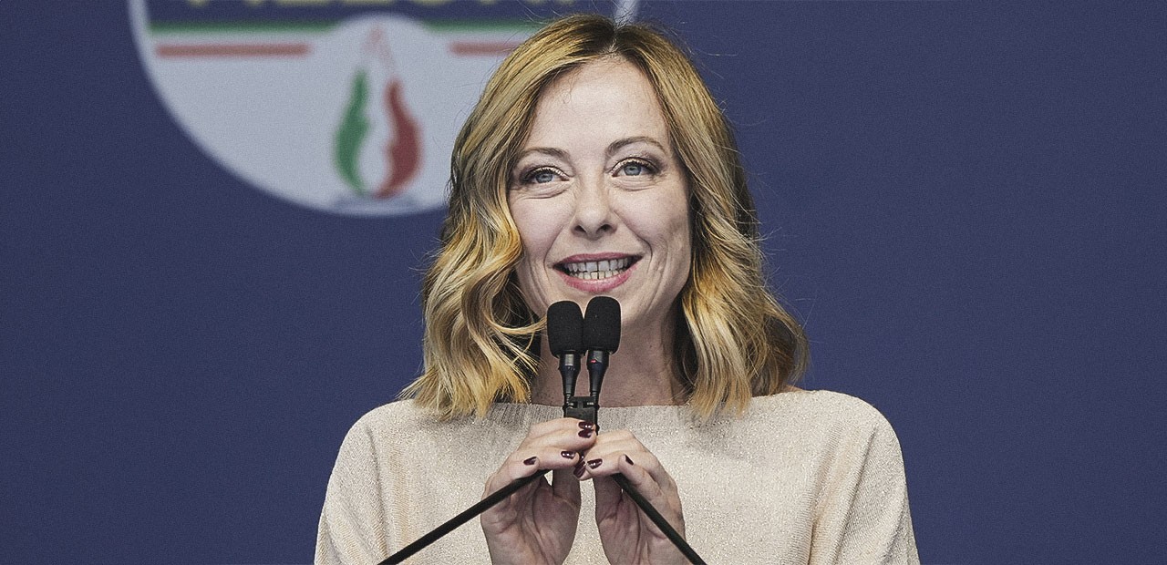 Italiens premiärminister Giorgia Meloni talar under ett valmöte inför EU-parlamentsvalet, den 1 juni 2024 i Rom. Foto: Alessandra Tarantino/AP/TT