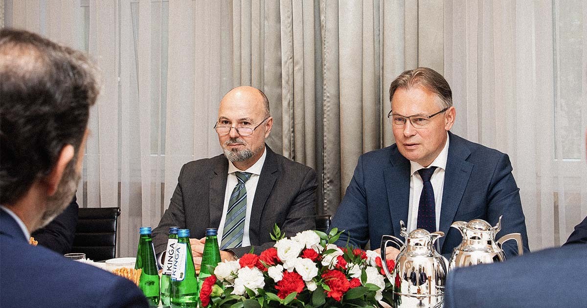 Polens tidigare ambassadör i Estland, Robert Filipczak, vänster, och tidigare statssekreteraren Arkadiusz Mularczyk under ett möte, den 29 augusti 2023. Foto: Konrad Laskowski/MSZ