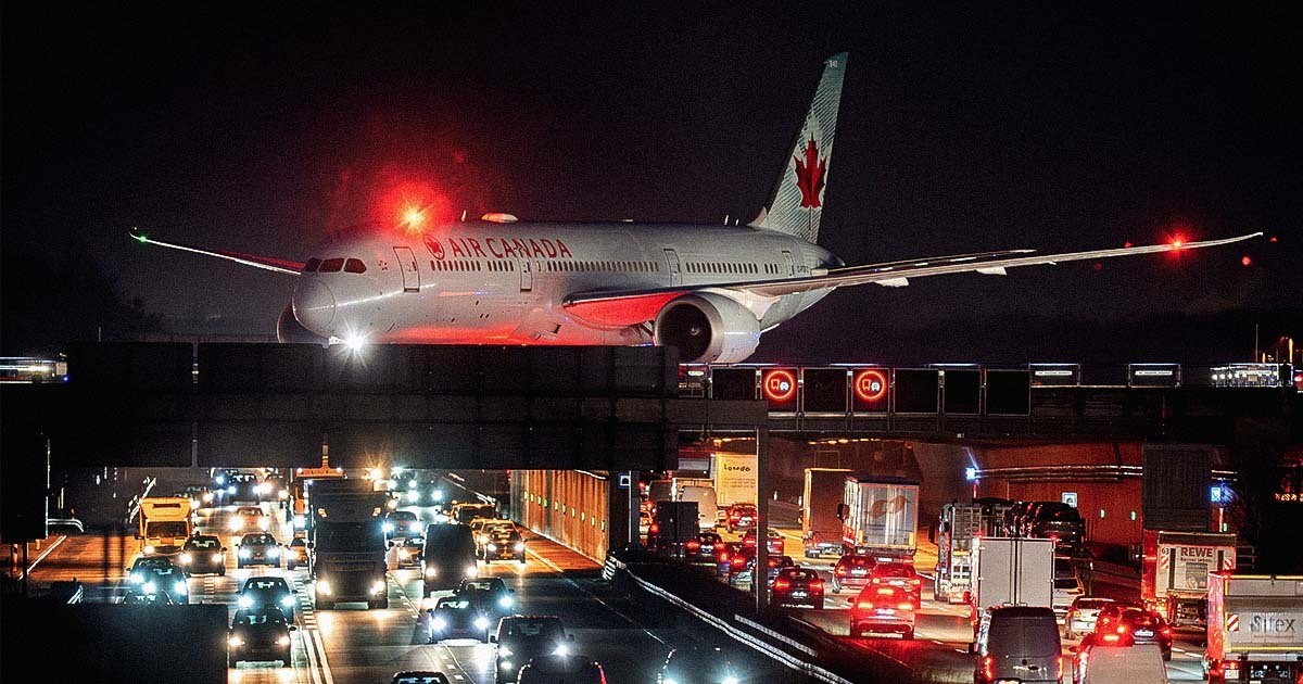 Ett Air Canada-flygplan rullar över motorvägen till sin parkeringsplats efter landning på flygplatsen i Frankfurt, torsdagen den 15 februari 2024. Foto: Michael Probst/AP/TT