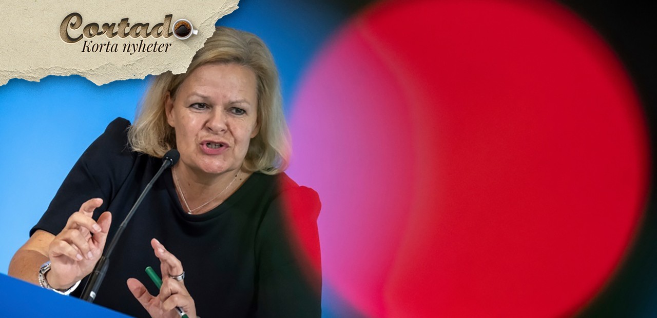Den tyske inrikesministern Nancy Faeser talar under en presskonferens i Berlin, måndagen den 9 september 2024. Foto: Michael Kappeler/dpa/AP/TT