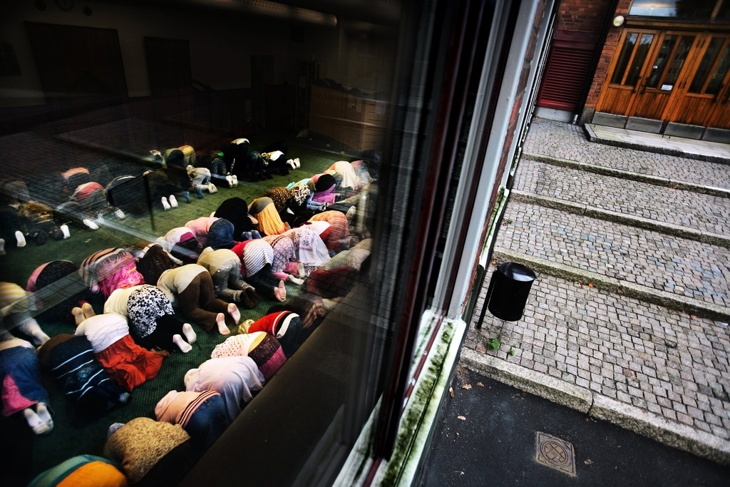 Lunchbön i en muslimsk friskola. FOTO: FREDRIK FUNCK / DN / TT