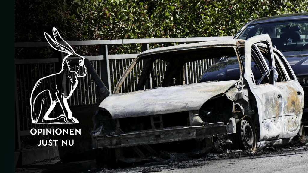Uppbränd bil i Rosengård, Malmö. FOTO: Johan Nilsson/TT