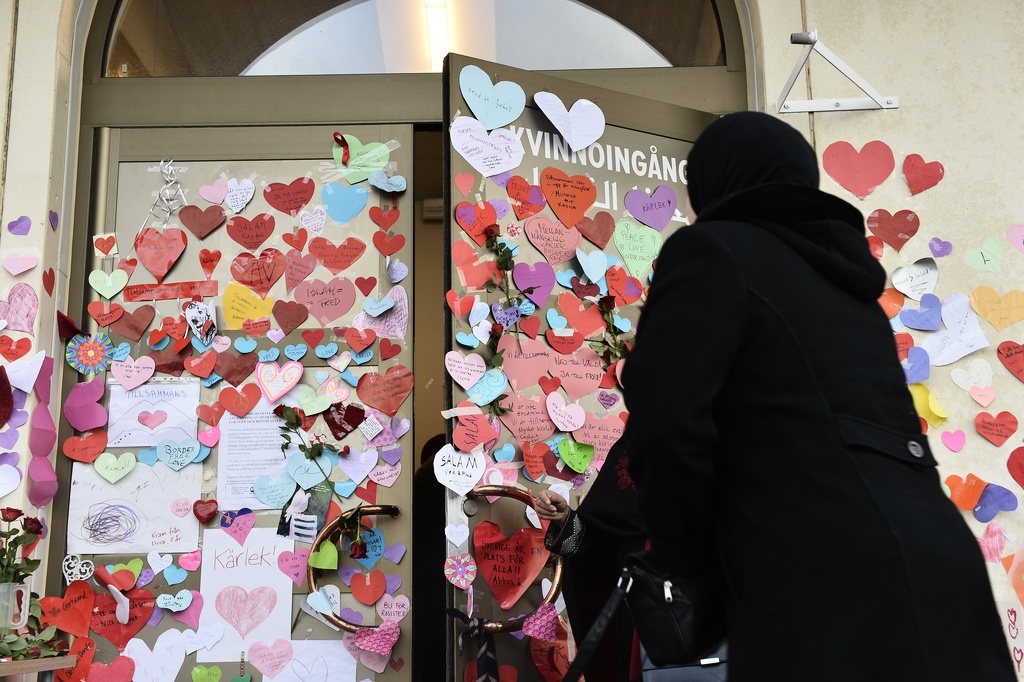 Varför ska svenska skattemedel användas för att forma en muslimsk identitet, frågar sig artikelförfattarna. På bilden kvinnoingången till Uppsala moské, som fått kärleksbudkskap efter en brand i en annan moské. FOTO: ANDERS WIKLUND / TT